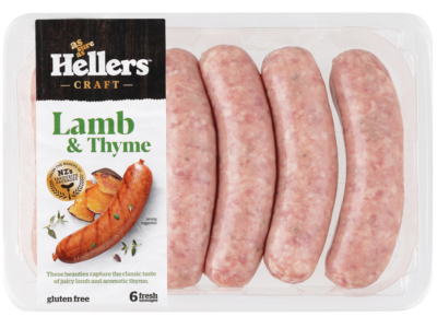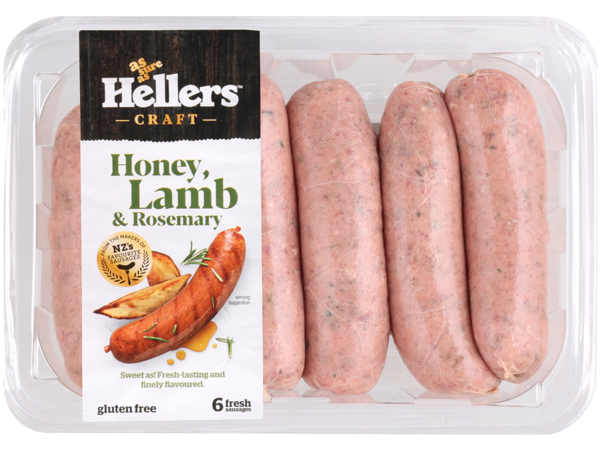 Lamb (67%), Water, Rice Flour, Honey (3%), Salt, Textured Soy Protein, Herbs [including Rosemary (0.5%)], Dehydrated Onion, Mineral Salt (451), Sugar, Spices (including Pepper), Preservative (223) (Sulphites), Rosemary Extract, Spice Extract, Natural Hog Casing