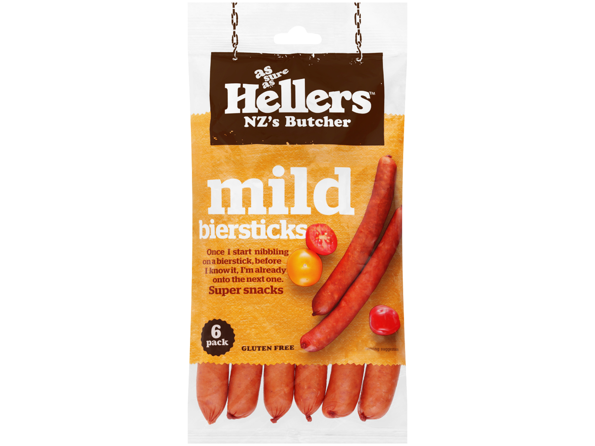 Our Mild Biersticks are a moreish mild flavour that suit most taste buds, they’re ready to eat straight out of the pack and are great on their own for a snack or in recipes. We like to use them simply in a tasty platter – just mix with some Hellers Pastrami, feta, roasted capsicum, sundried tomatoes and your favourite cheese and you’re good to go. Brilliant!