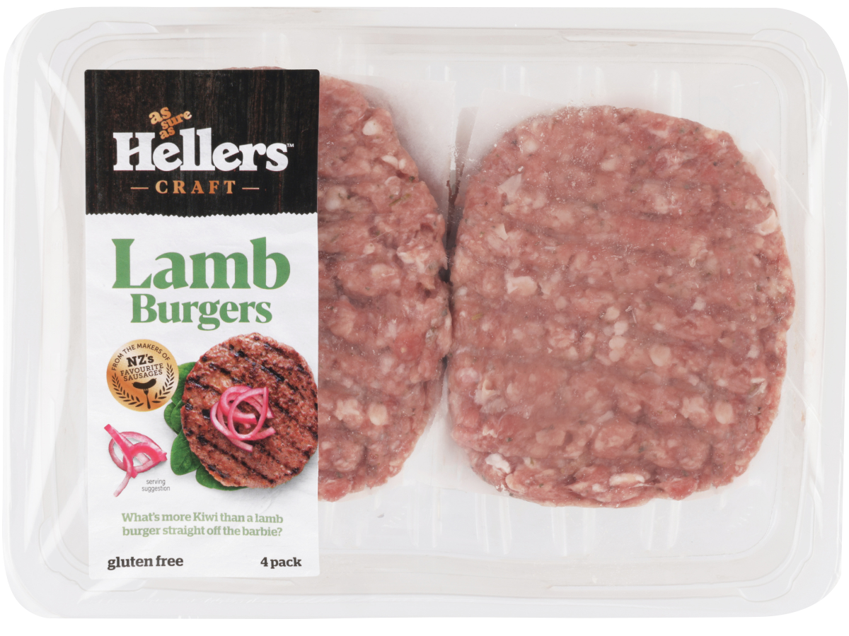 Award-winning and packed with flavour, Hellers Lamb Burgers are made from succulent New Zealand lamb for a gourmet experience. Barbecue or pan-fry for juicy, tender lamb burgers that are perfect for your next burger night.