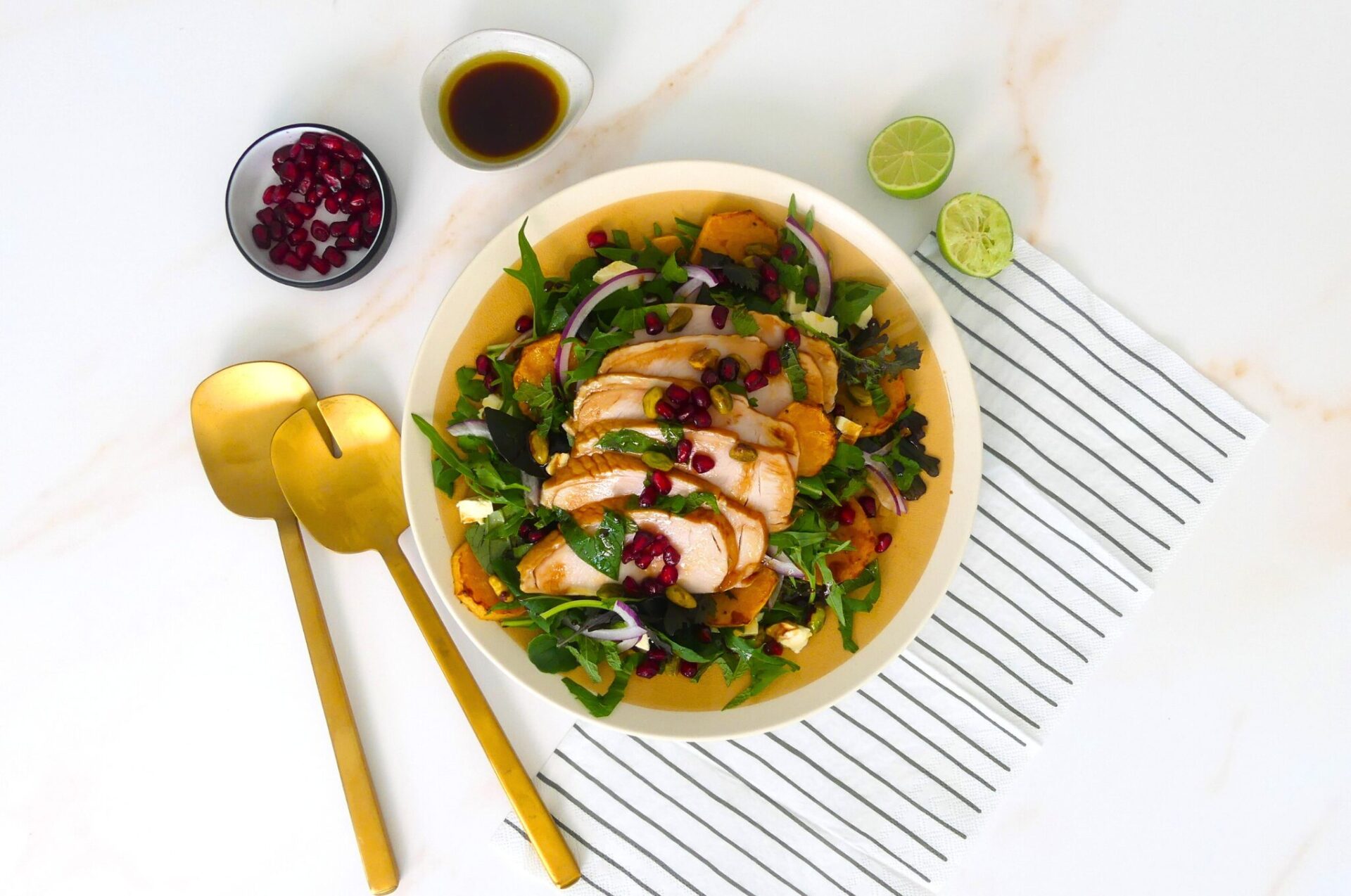 Smoked Chicken, Pomegranate, Pumpkin and Feta Salad