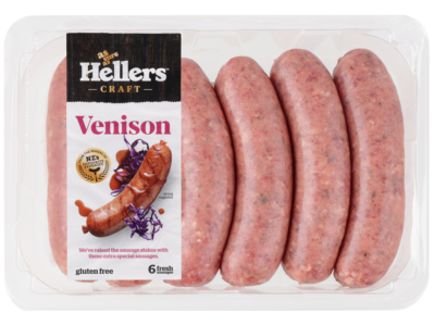 - 6 Hellers Venison sausages casings removed
